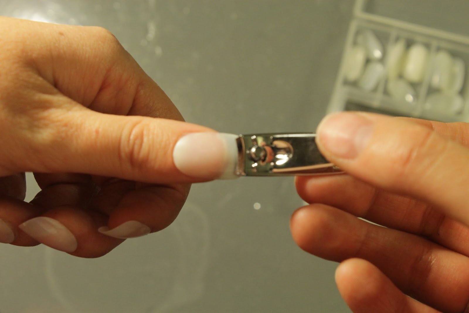 This isn't a requirement, but I like to clip my real nails before I put the fake ones on.